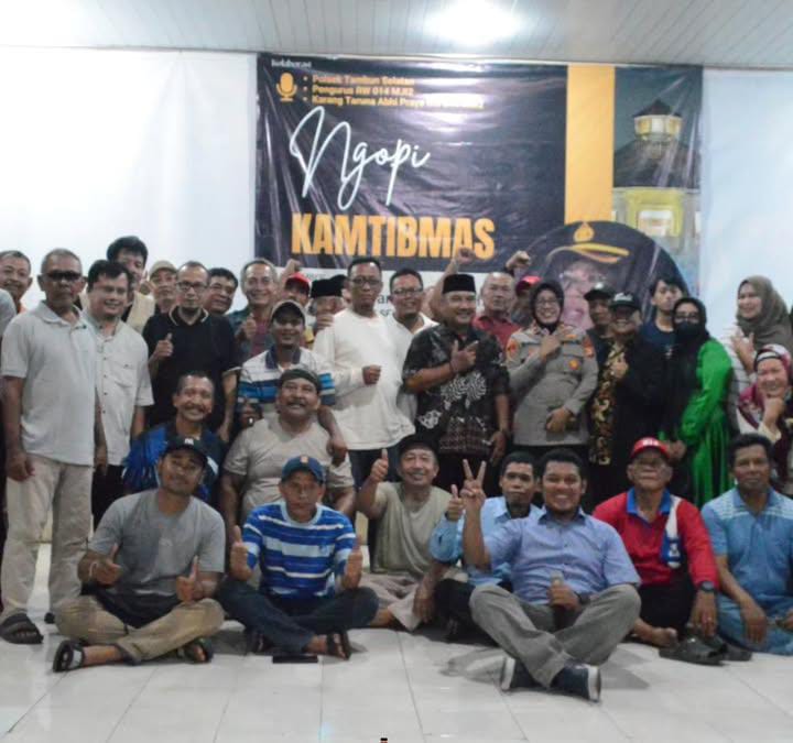 MITRANEWS, Bekasi – Program Kepolisian Sektor Tambun Selatan dalam rangka mempererat dan sinergitas hubungan Polisi dengan masyarakat menggelar kegiatan Ngopi Kamtibmas serentak dibeberapa lokasi wilayah hukum Polsek Tambun Selatan Bekasi. Diantaranya berlokasi di pendopo RW 014 perumahan Mangun Jaya Indah 2, Desa Mekarsari, Kecamatan Tambun Selatan, Bekasi. Sabtu (13/09/2025) malam.